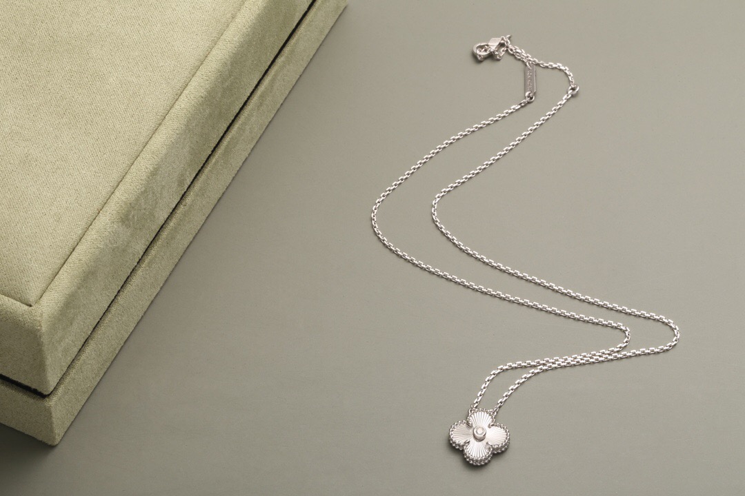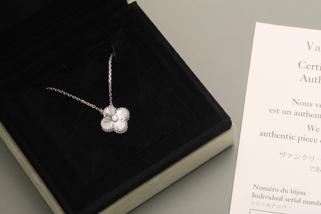 Van Cleef Guilloché Necklace White Gold Vintage Alhambra Pendant VCA 2020 Holiday limited edition